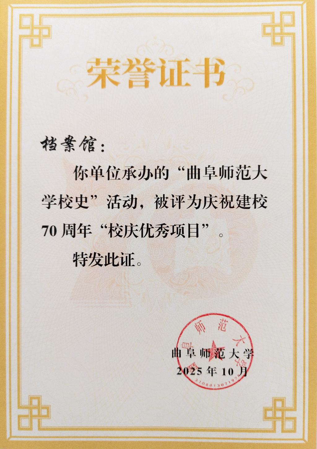 校庆工作筹备期间,档案馆全体同仁发扬甘于奉献、勇挑重担的精神,以“功成不必在我”的境界和“功成必定有我”的担当,圆满完成《曲阜师范大学校史(1955-2025)》《曲阜师范大学大事记(1955-2025)》的编纂任务,同时完成“建校70周年突出贡献人物”资料的收集整理、校对及遴选工作,并为校史馆升级改造建设项目提供完整的校史文稿,参与展陈设计,把关展陈内容。